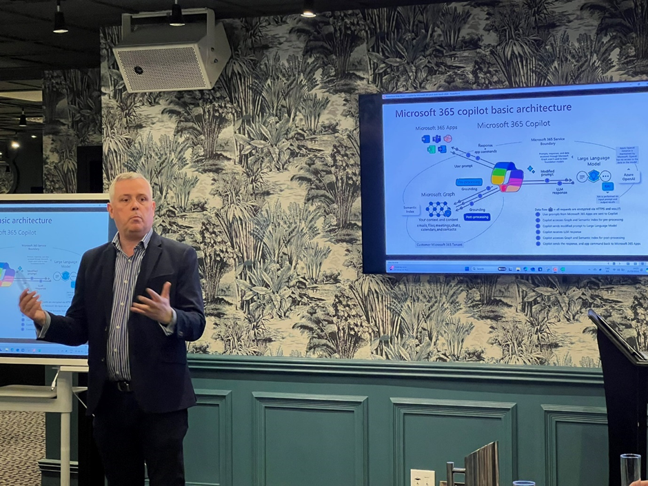 The final session of the afternoon was Eoin Mulligan discussing Microsoft Copilot. Despite it being his third presentation of the day, we were grateful he made his way across town to deliver his insights into this pioneering technology. This is really one of those moments in tech where you really step back and think this could transform the way we work and interact with each other. Being able to leverage AI to surmise your inbox into actionable items first thing in the morning? Sounds impressive. Microsoft Copilot is in its early days in the hands of the masses, but these models have been around for decades and are finally making their way into the mainstream. This is something to embrace, or risk getting left behind.