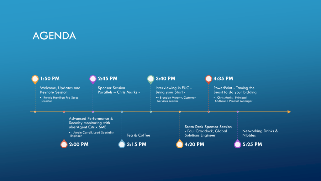 The sponsors for the day were Parallels RAS and Stratodesk to relatively new players in the Irish market but have been around the EUC space for a considerable time, so it was great to give the Irish partner and user technical community a fell for where both technologies sit in the vast eco system that encompass EUC.
